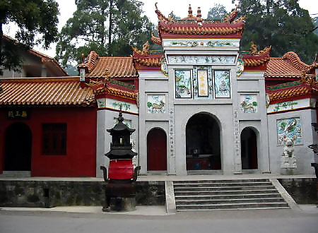在岳麓山半腰,系晉初古寺,是佛教人湘最早的一所大寺。明神宗時 更名為萬壽寺,民國初年復(fù)名,古麓山專。唐代大詩人杜甫曾用“寺門高開 洞庭野,殿腳插入赤沙湖”的詩句稱頌殿字宏大。大雄寶殿等主要建筑,于 1944年被炸毀,僅存山門和觀音閣,現(xiàn)已修整一新.山門上有“古麓出寺” 的橫額,兩旁為“漢魏最初名勝,湖湘第一道場"對聯(lián),門外古楓參天,濃 蔭覆蓋,門內(nèi)園圃百花爭艷。觀音閣為磚木結(jié)構(gòu),1955年曾加以修葺,1980 年再次修整恢復(fù)原貌,并在廳堂神龕中置觀音像。閻內(nèi)常舉辦小型書畫展 覽。觀音閣前有兩株羅漢松,左邊一株是六朝遺跡,稱“六朝松",樹 齡在1700年以上, 是岳麓山植物界的"元老", 老干新枝,紛繁翁 郁,彌足珍貴;右邊一株于清代被巨風(fēng)拔去并被清代人補植。兩棵古松 并峙于閣前,游人樹下經(jīng)過,若入關(guān)隘,故有“關(guān)松"之稱。