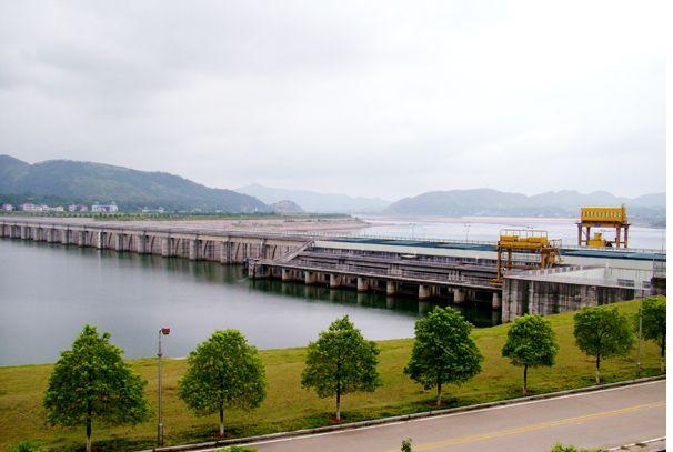 大壩的西面,是水利發(fā)電站,電站共有4臺機組,年發(fā)電量已達到5.56億千瓦小時。船閘座落在大壩的東側(cè),一次可通行二艘千噸級輪駁船隊。