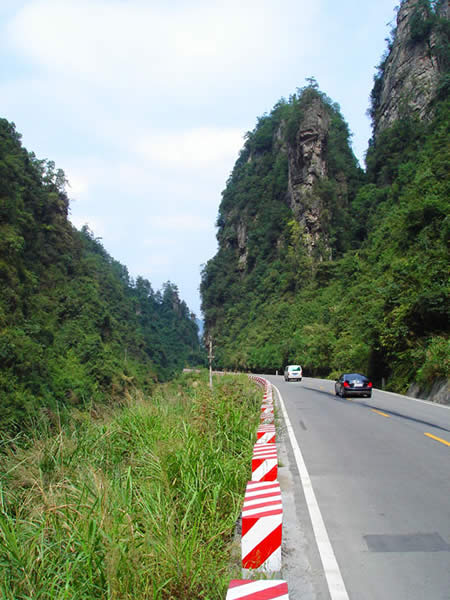 百丈峽圖片 百丈峽是武陵源風(fēng)景名勝區(qū)通往張家界市的公路貫通整個峽谷,因有堵高近百丈的石壁,直插云霄,不敢仰視,故而得名。據(jù)《慈利縣志》載,索溪峪右得百丈峽,峽長三十公里……又相傳向王天子起義軍與官兵在此先后博殺一百仗,依此又名百仗峽。明代九永兵備胡桂芳,一生好游歷山川,來到百丈峽后題寫了一首七言詩:“峽高百丈洞云深,要識桃源此處尋;戎旅徐行風(fēng)雪緊,誰將興盡類山蔭。”刻于峽內(nèi)道旁石壁上。