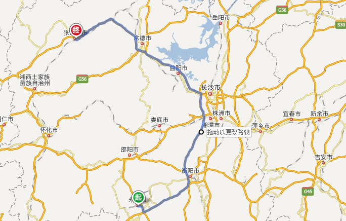 左右,沿途經過永州——衡陽——湘潭——長沙——益陽——常德——慈利——張家界市。