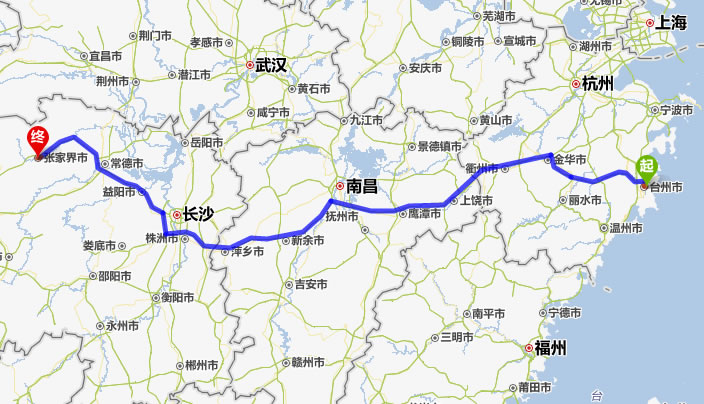 現(xiàn)在位置:張家界旅行社->交通指南->自駕車路線 -> 臺州到張家界旅游自駕車線路,臺州去張家界自己開車要多長時間,有多少公里