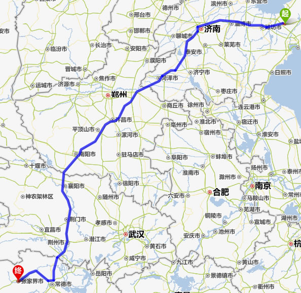 平度到張家界自駕車(chē)旅游線路(距離最短)