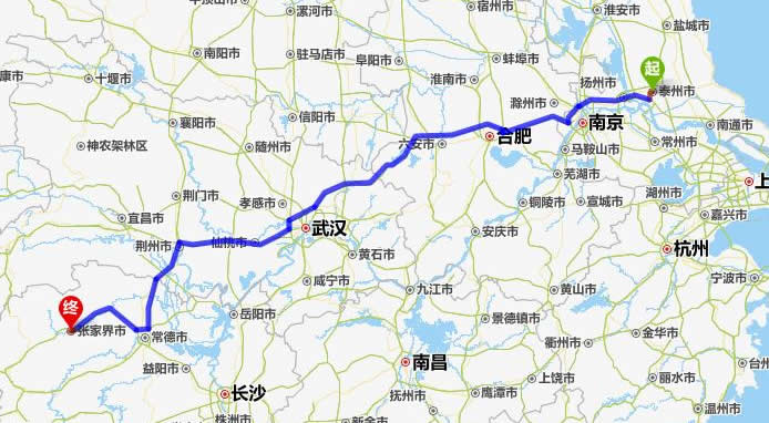 泰州去張家界自駕車自助游線路圖全程高速):