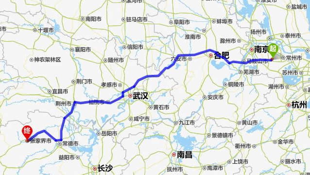 金壇去張家界自駕車自助游線路圖全程高速):