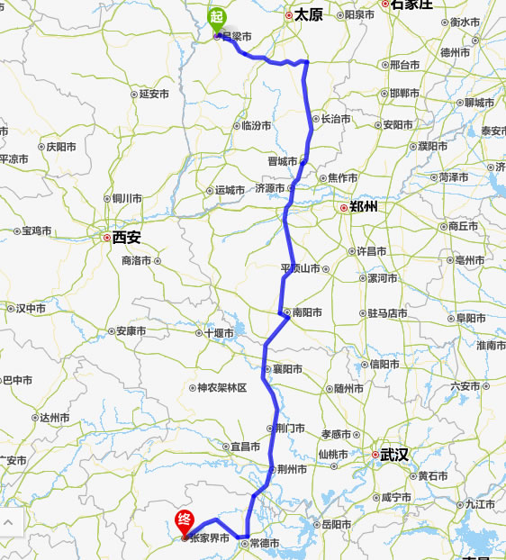 呂梁去張家界自駕車自助游線路圖全程高速):